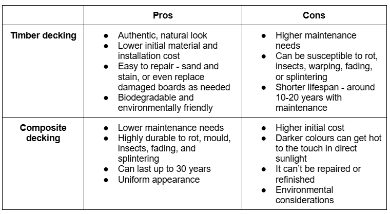 While the choice is up to you, it’s important to make the decision between timber decking and composite decking. Doing so early allows you to be fully prepared and have everything you need when it comes to installation day!